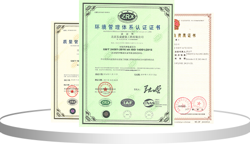 先后取得北京市建設委員會核發(fā)的機電工程專業(yè)承包、裝飾裝修專業(yè)承包、建筑智能化專業(yè)承包等多項專業(yè)承包施工資質(zhì);并順利通過ISO9001、T50430質(zhì)量管理體系認證,ISO14001環(huán)境管理體系認證和OHSAS18001職業(yè)健康安全管理體系認證,完成三個體系的整合認證工作。